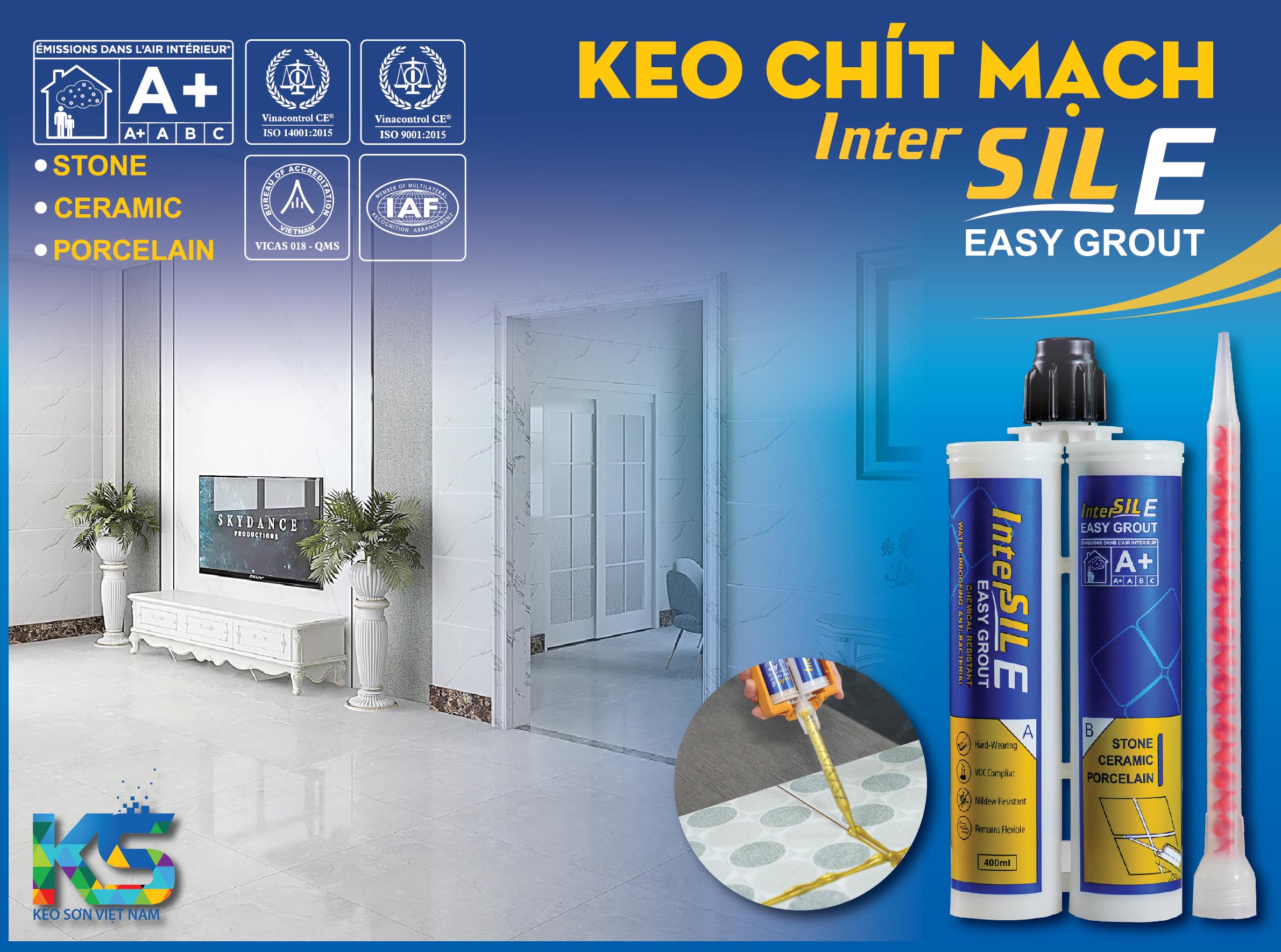 Đó là lý do Keo chít mạch 2 thành phần INTERSIL-EASY GROUT (Sil E) ra đời. Với công nghệ polymer tiên tiến, Sil E khắc phục hoàn toàn nhược điểm trên, mang đến độ cứng cao, màu sắc bền lâu và bề mặt sáng bóng.