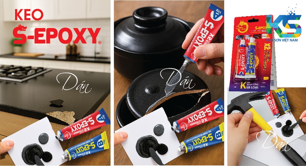 Keo 2 thành phần S-Epoxy Rồng Vàng – keo epoxy siêu bền, chịu nhiệt 150°C, dán chắc kim loại, gỗ, thủy tinh. Giải pháp kết dính cho xây dựng & sửa chữa.